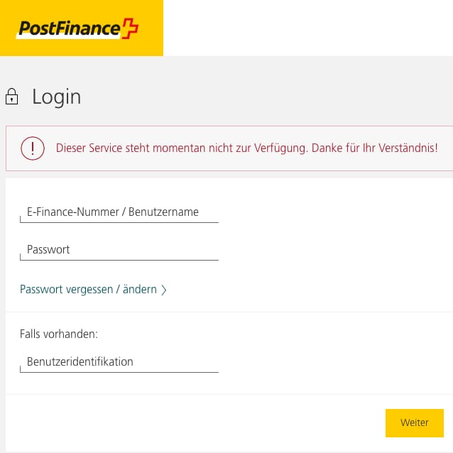 Postfinance Störung